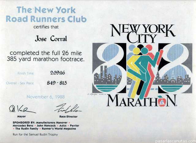 Recuerdo que millones de simpáticos y amigables neoyorquinos me ayudaron con sus voces de aliento a conseguir en 1988 este entrañable recuerdo. No podemos contener las lágrimas. Pasamos el resto del día pegados al televisor.