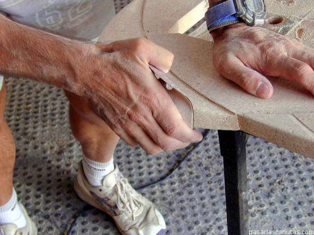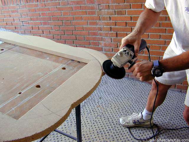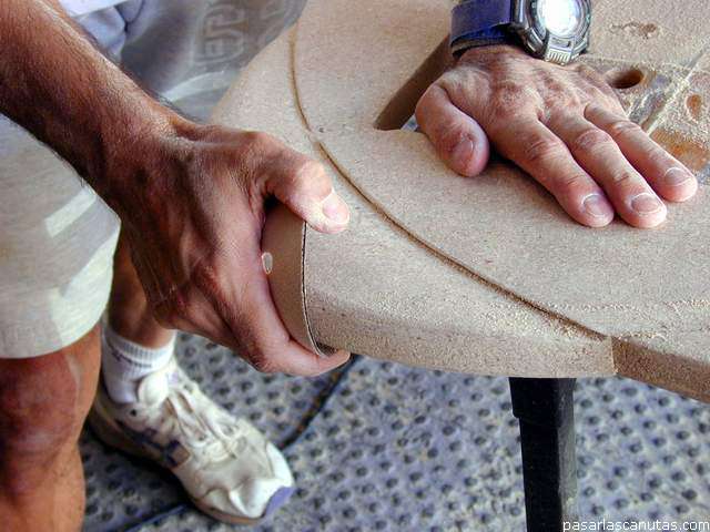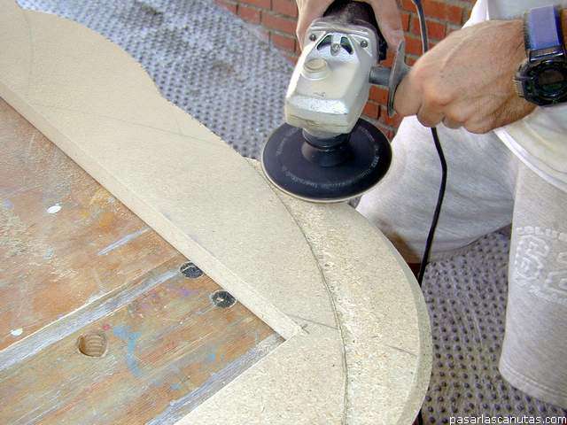 ... radial y lija de grano 60 y después 120-180, redondeo los cantos ...