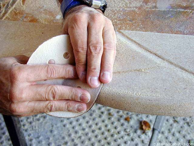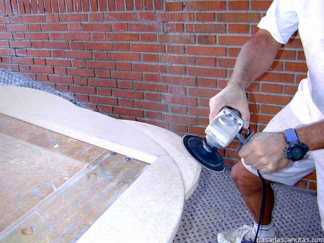... dando varias pasadas con la radial en ligera posición "de patinar", nunca "de clavar o picar" ...