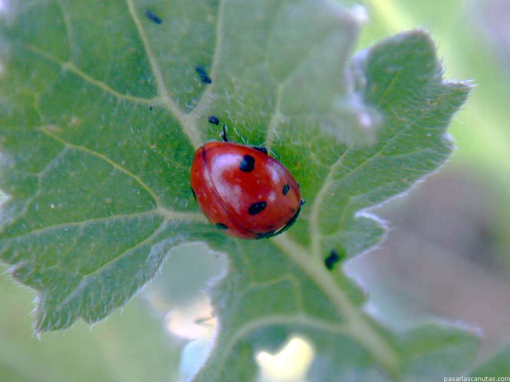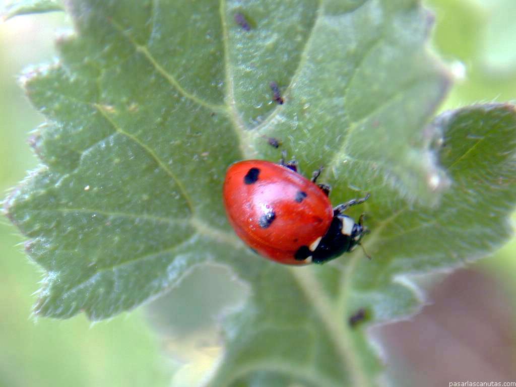 | Esta coleccion de fotografias de mariquitas, vaquitas de San Antonio, incluye 16 fotos de mariquitas de siete puntos y otras 10 fotos de otros tipos que se dan en el mismo entorno (entre ellas, de 8 puntos y de 2 puntos). |