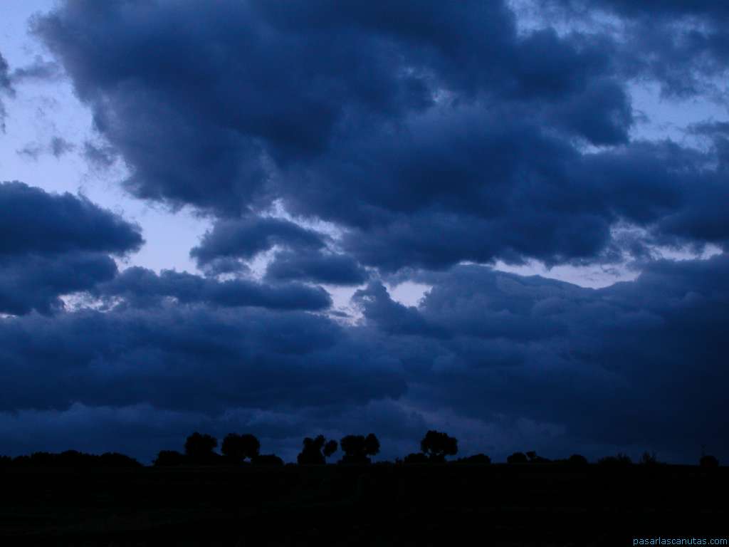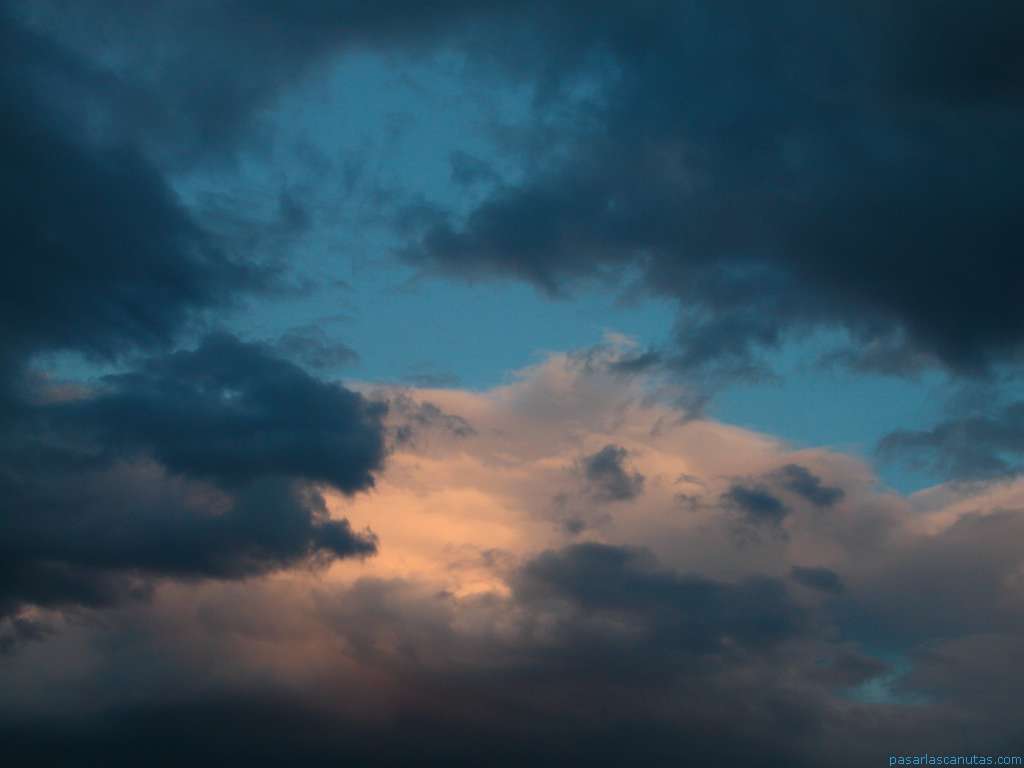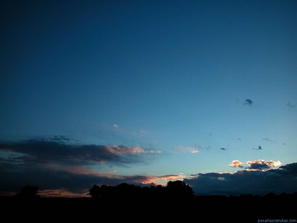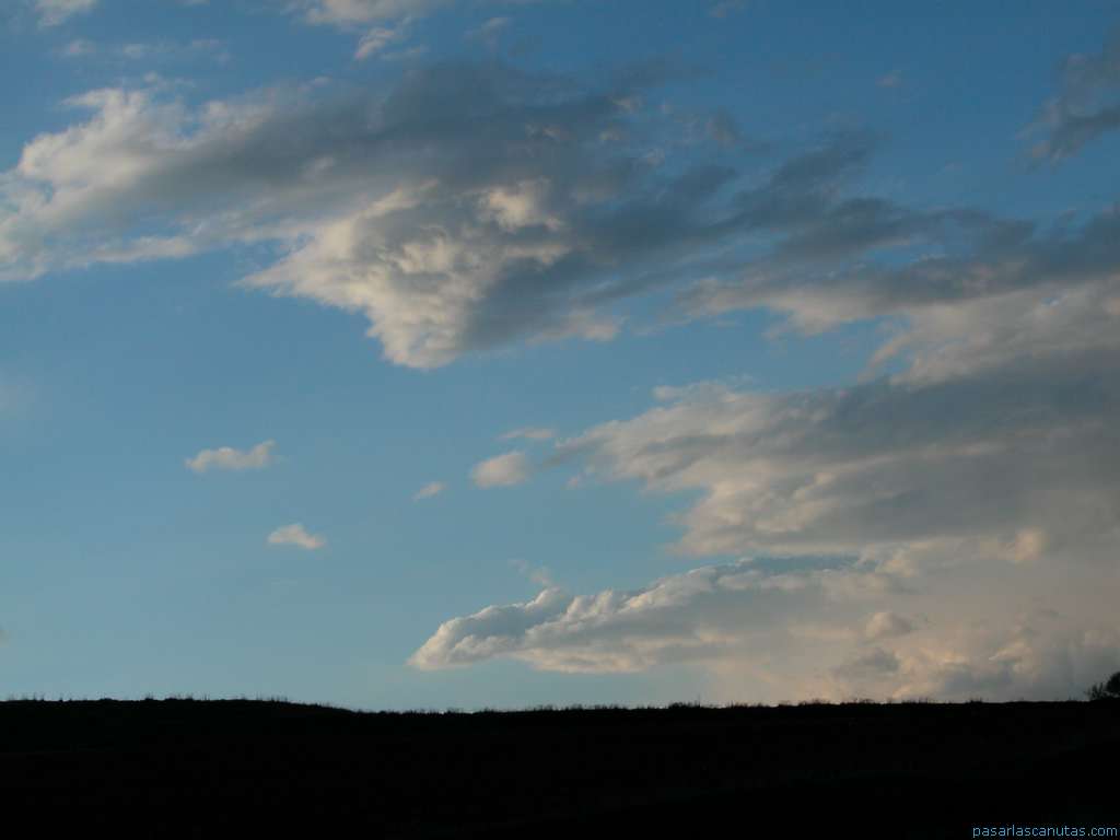 cielo azul y nubes al anochecer en Serracines