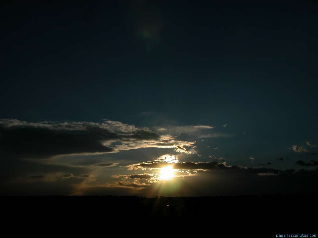 últimos rayos de sol tras las nubes al atardecer en Serracines