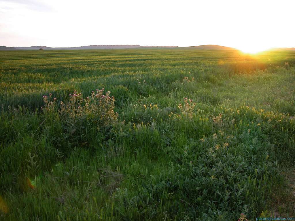paisaje de campos de trigo contra el sol poniente de Serracines