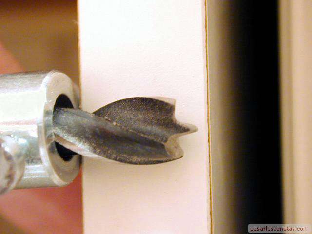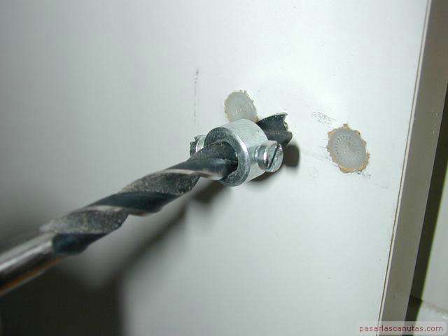 ... hasta el fondo (picando la foto se puede ver que parte del material ha quedado fuera, por lo ajustado del agujero) ...
