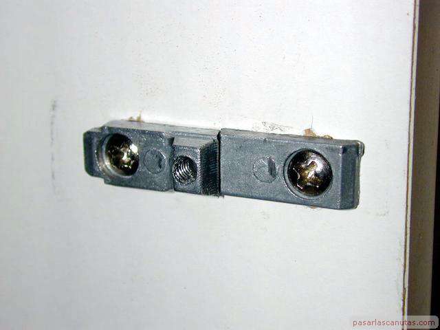 ... encajo la segunda pieza en el resalte lateral izquierdo de la primera, aprieto los tornillos de ésta del todo ...