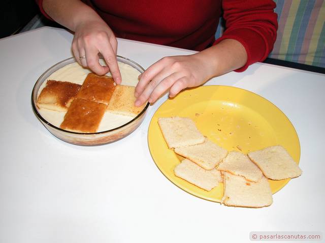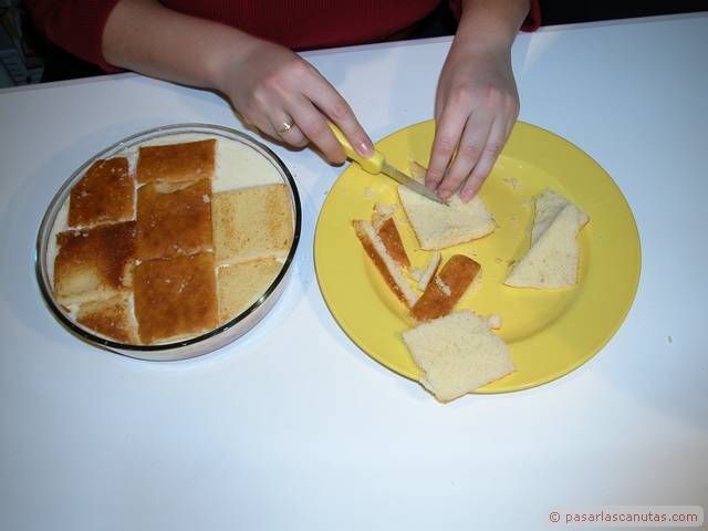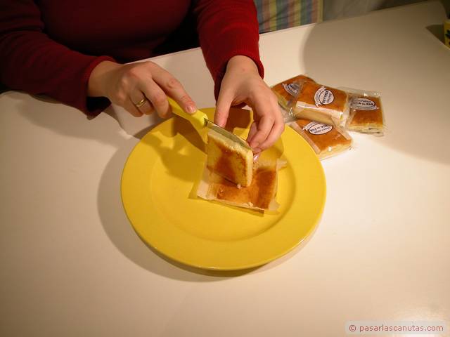 ... con la fina capa de los sobaos pasiegos que hemos cortado ...