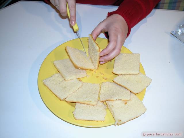 ... mientras que vamos cortando los sobaos por la mitad ...