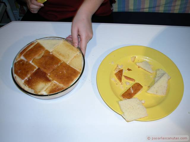 Ya está. Ahora se deja enfriar a temperatura ambiente y luego en la nevera. Nos comemos los recortes de sobaos, claro.