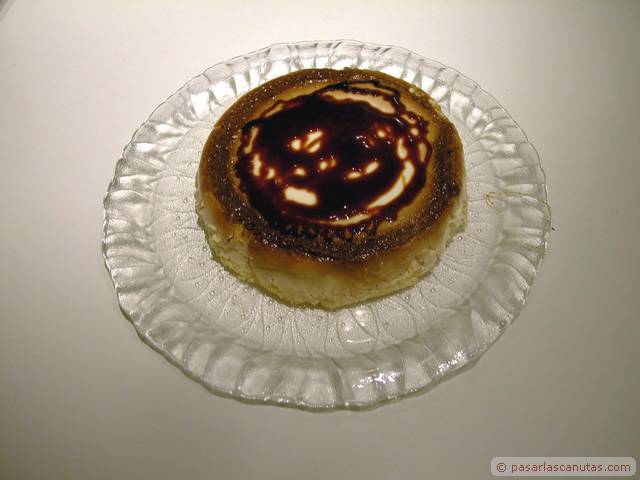 La tarta de cuajada lista para comer. Lo que sobra se guarda en la nevera y al día siguiente está mejor todavía.