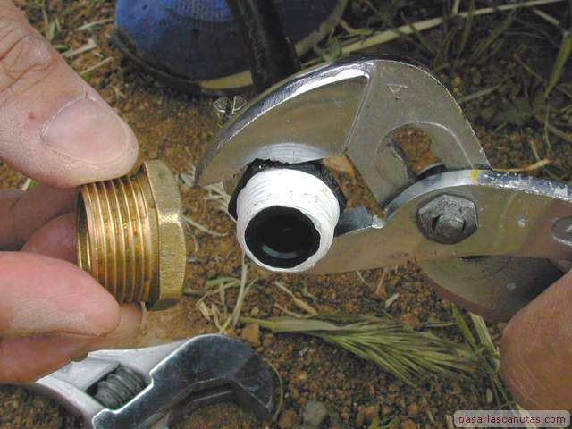 ... el macho-hembra de 3/4" a 1/2" (se necesitan dos llaves de apriete) ...