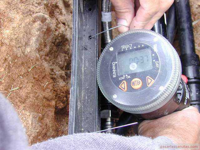 Después de abrir la llave de paso, la de la derivación que acabo de instalar, y de pulsar apertura manual en el temporizador ...
