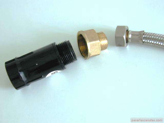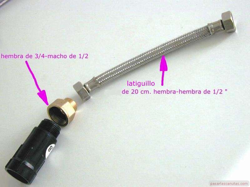 (poner arandela de 3/4), y hembra (de plástico negro) de 1/2-toma para tubería de 12 mm.