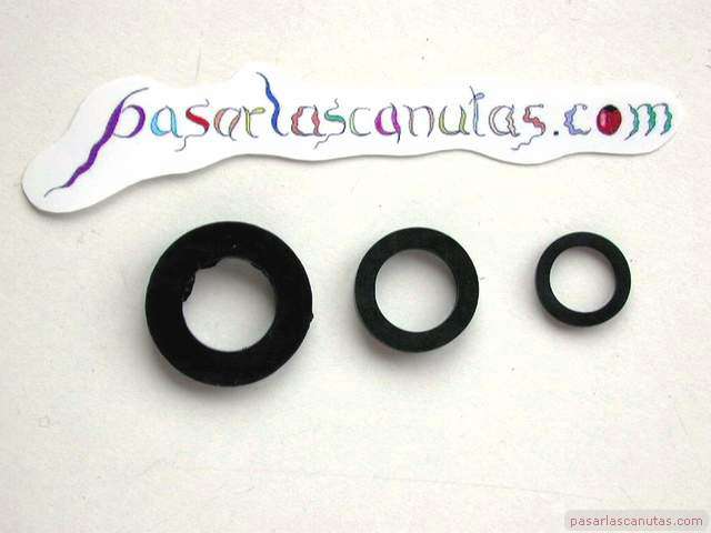 ... una arandela de goma para 3/4 (la más grande de la foto, que tiene a su derecha arandelas para 1/2 y 3/8 de pulgada).