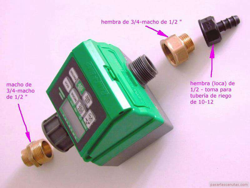 (picar foto), que son: macho-macho de 1/2 a 3/4 (comprobar que el temporizador lleva la arandela para 3/4), ...