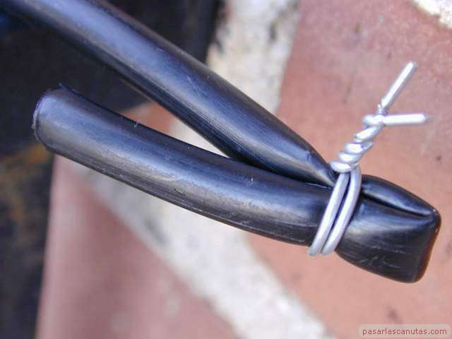 Al final del recorrido pondré un gotero. Mientras tanto doblo el tubo e improviso una abrazadera de alambre.