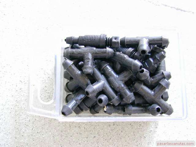 ... (caja con goteros y "tes"), para ir componiendo el sistema sobre cada maceta o jardinera ...