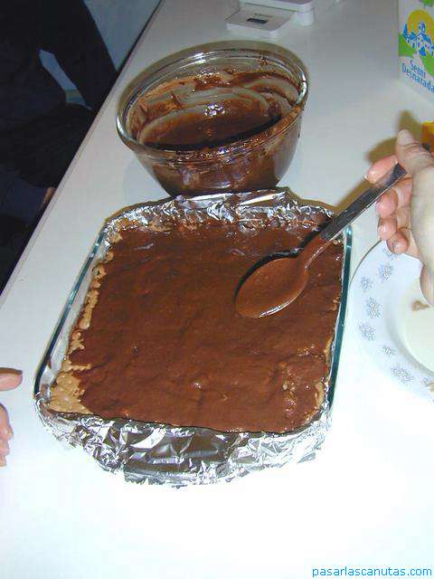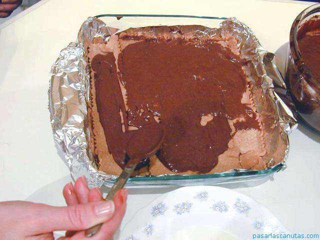 Una vez cubierta la primera capa con la pasta de chocolate ...