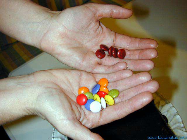 Por último, separamos los lacasitos marrones, que apenas se pueden ver ...