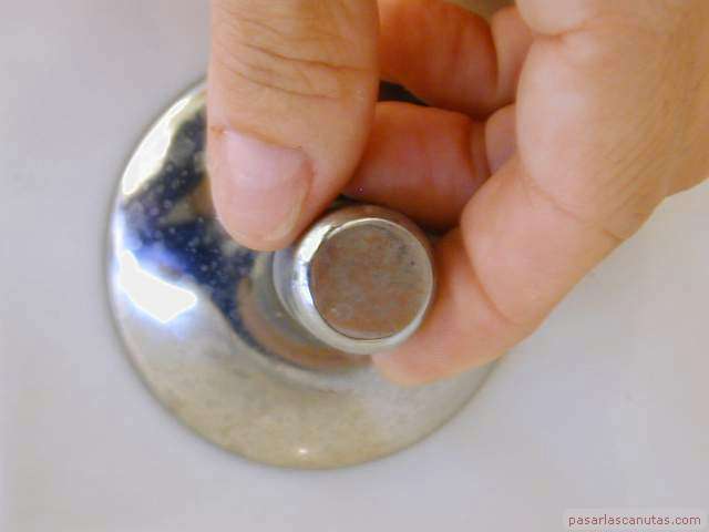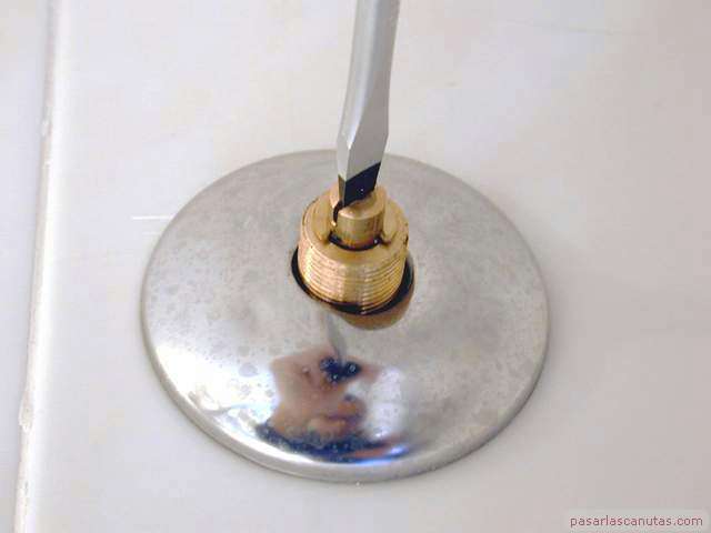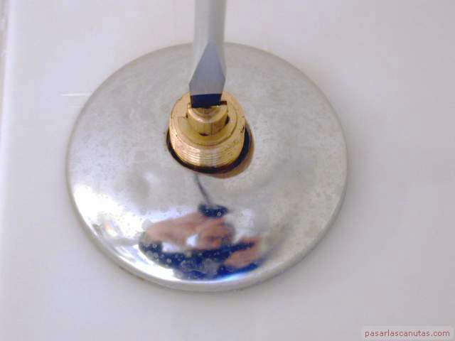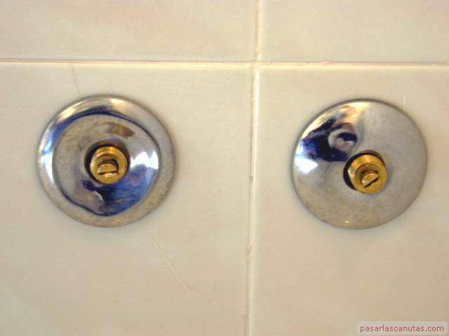 ... quitando la caperuza de una de las dos llaves de paso ...
