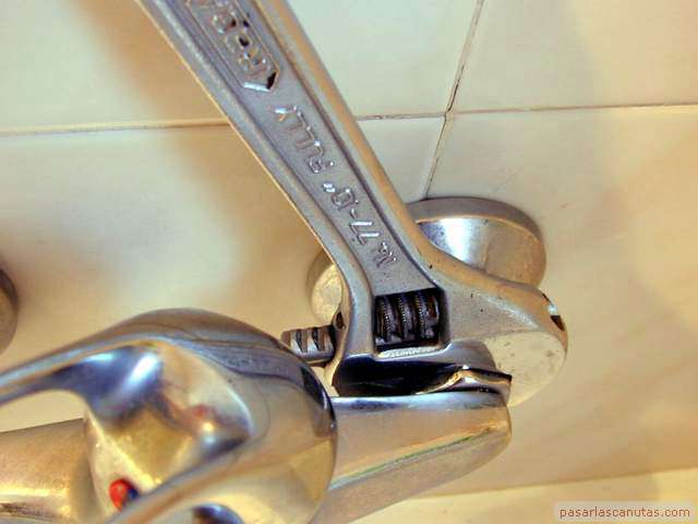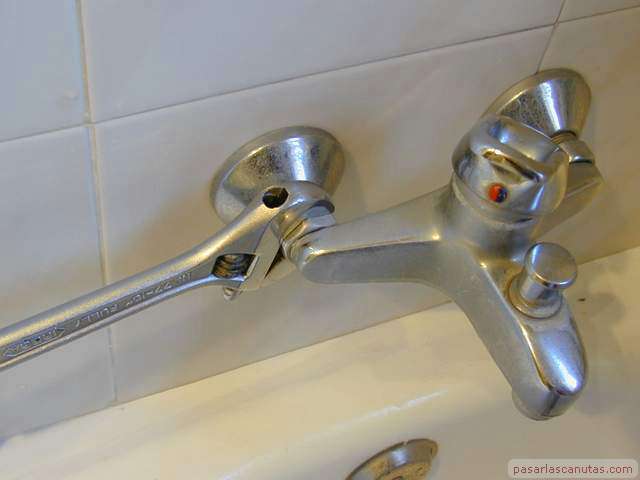 ... inglesa habitual en bricolaje fácil, aflojo la tuerca izquierda de sujeción del grifo viejo ...