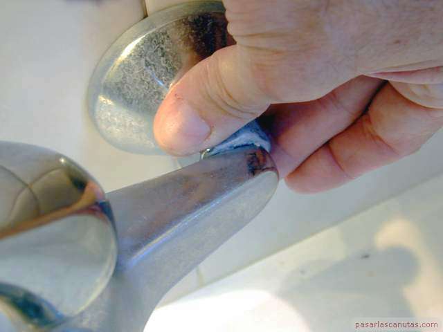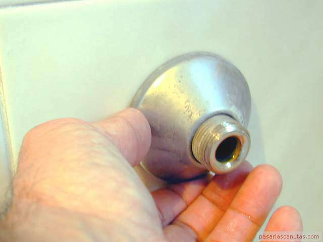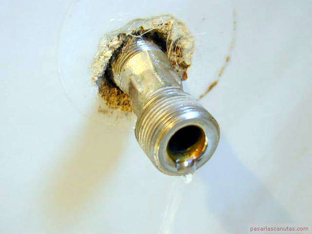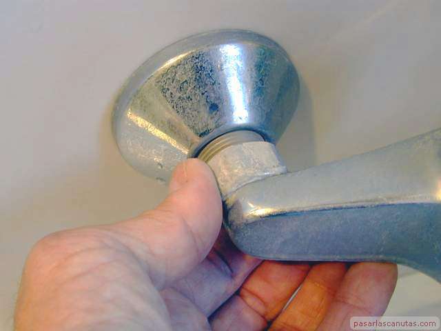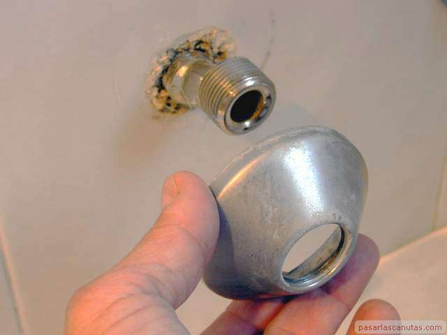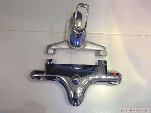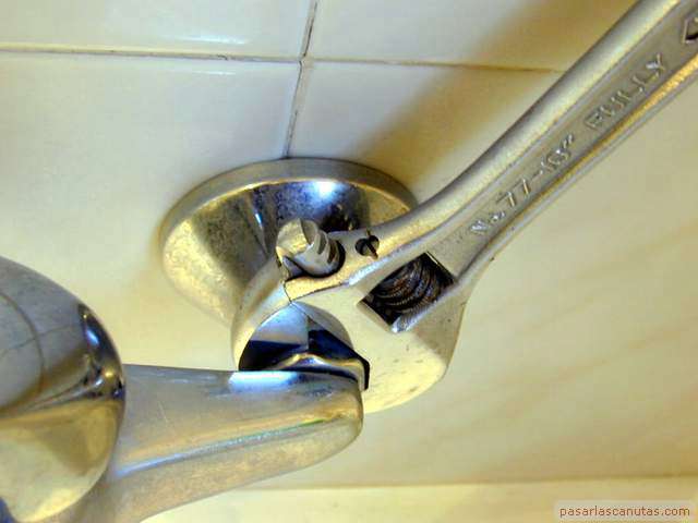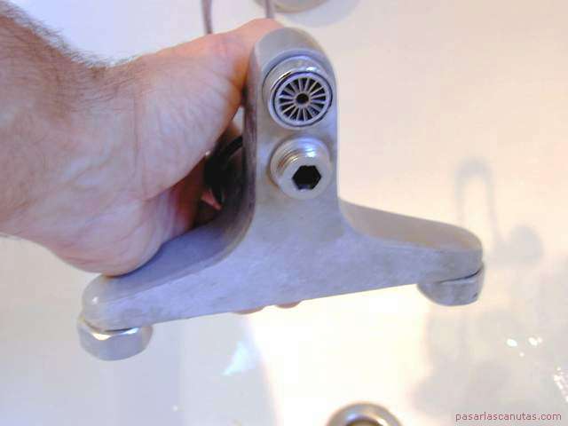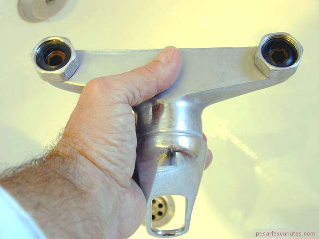 ... sujetando con una mano el grifo para que no se caiga, porque puede romper la bañera, acabo de soltar las tuercas ...