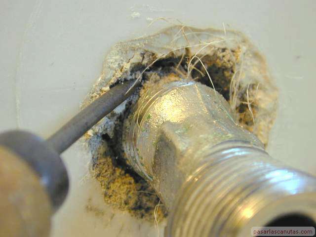 ... con un punzón o algo fino, limpio los restos de obra alrededor del acoplador ...