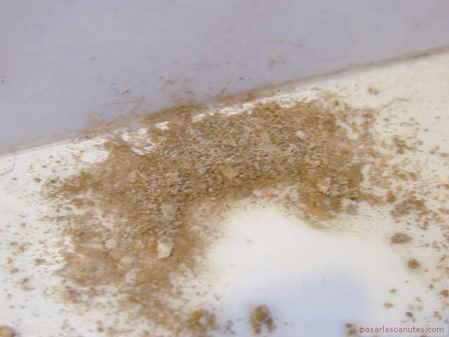 ... cuando ya no sale, pongo el tapón del baño, para que no salga arena por el desagüe ...