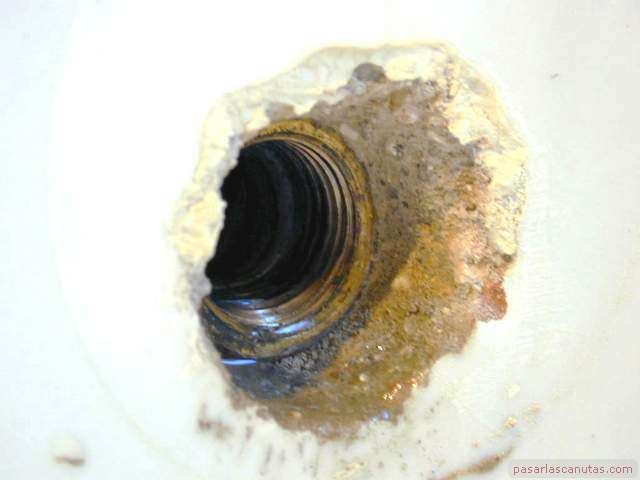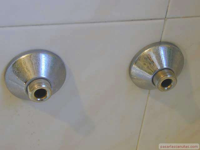 ... vista de la rosca en la pared, está muy hundida respecto a la línea del azulejo ...