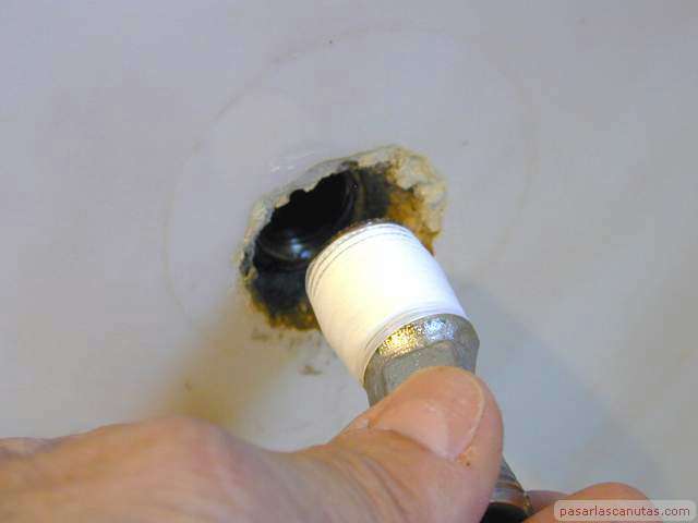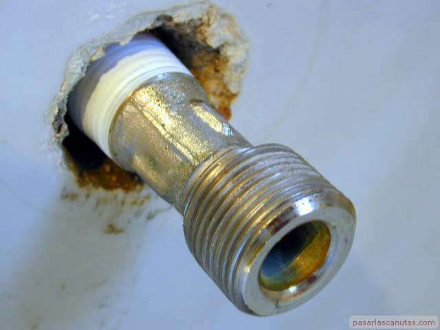 ... pero al comprobar que por ser mucho más corto que el acoplamiento viejo no permitiría la instalación (el grifo no llegaría a apretar) ...