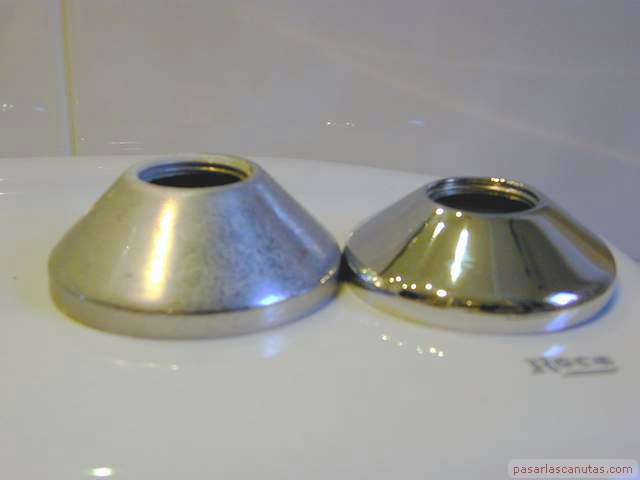 ... elijo el embellecedor viejo, porque es más alto y la rosca del grifo quedará más cubierta ...